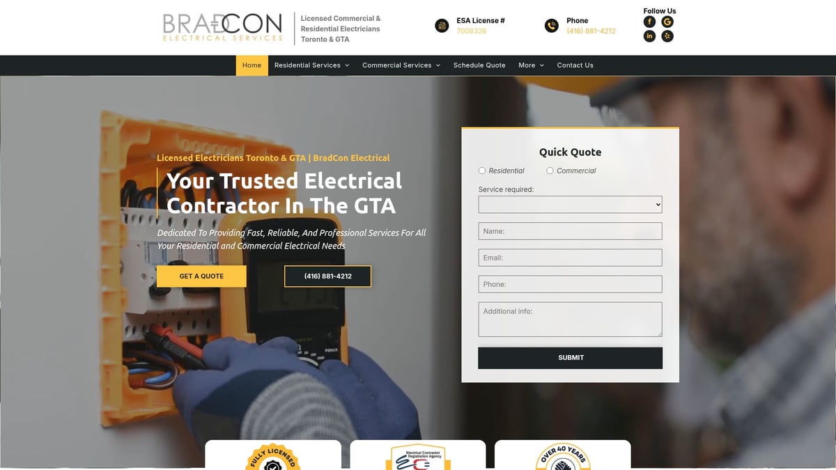 | Bradcon | Custom | Residential/Commercial | Yes | Local, CEC compliance | GTA/Scarborough |